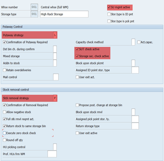 It is defined as a customizing master data by alphanumeric three-character key that is unique within the warehouse number. Following control parameters can be defined.